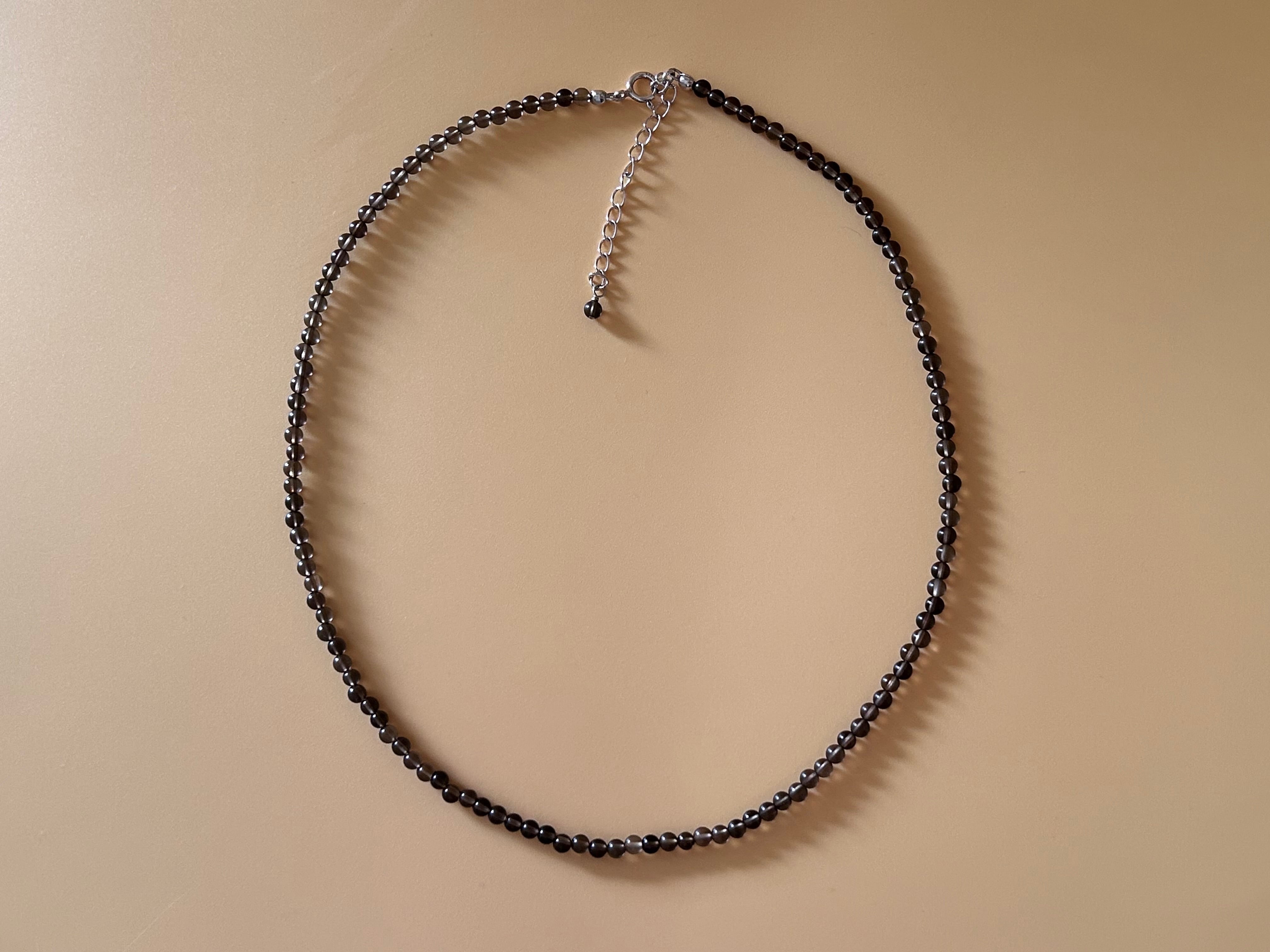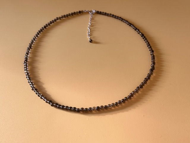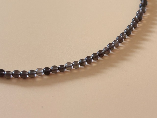 光に触れるとやわらかく透け、影では静かに濃さを増す、二つの表情を楽しめるネックレスです。