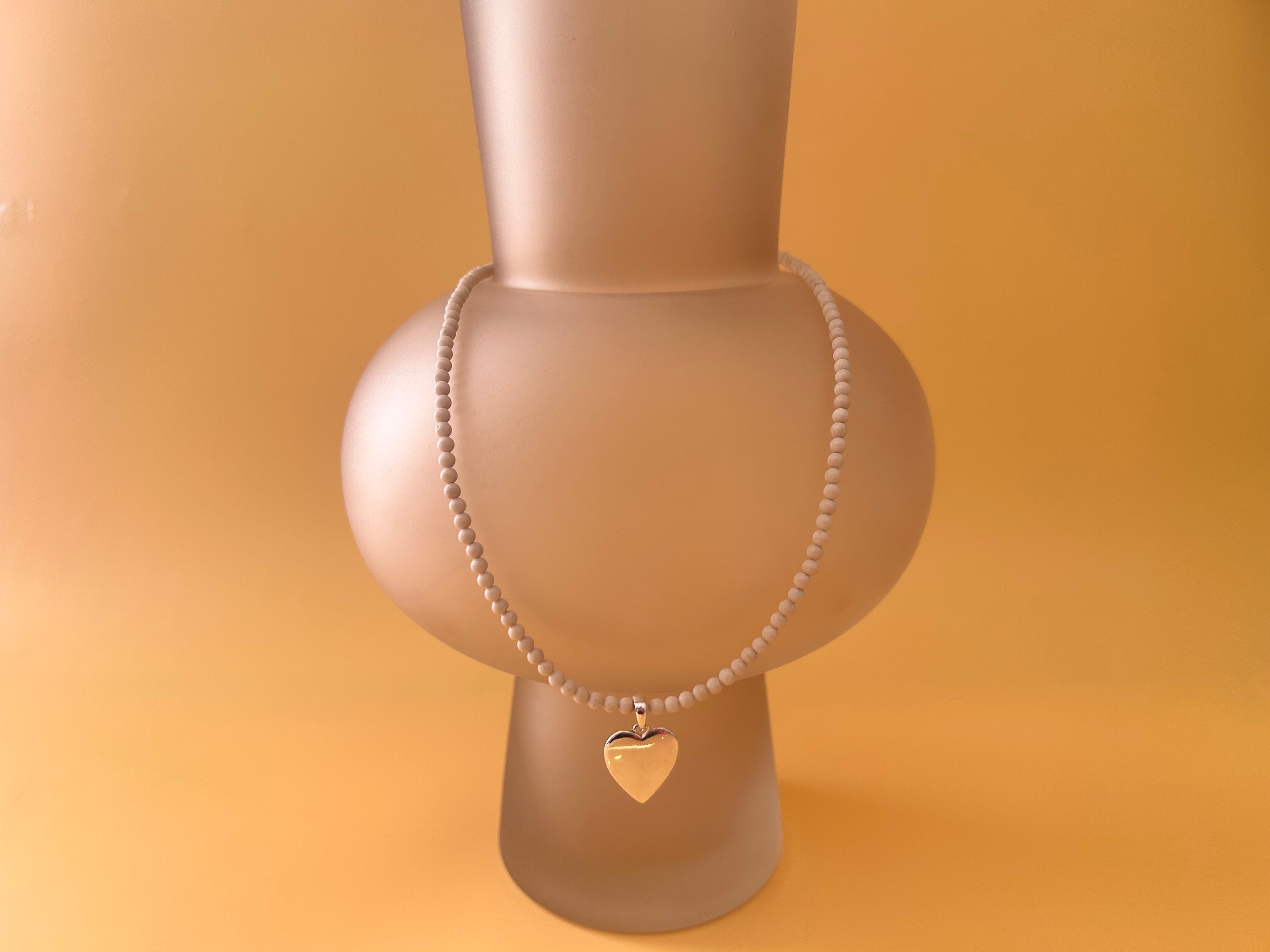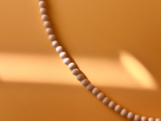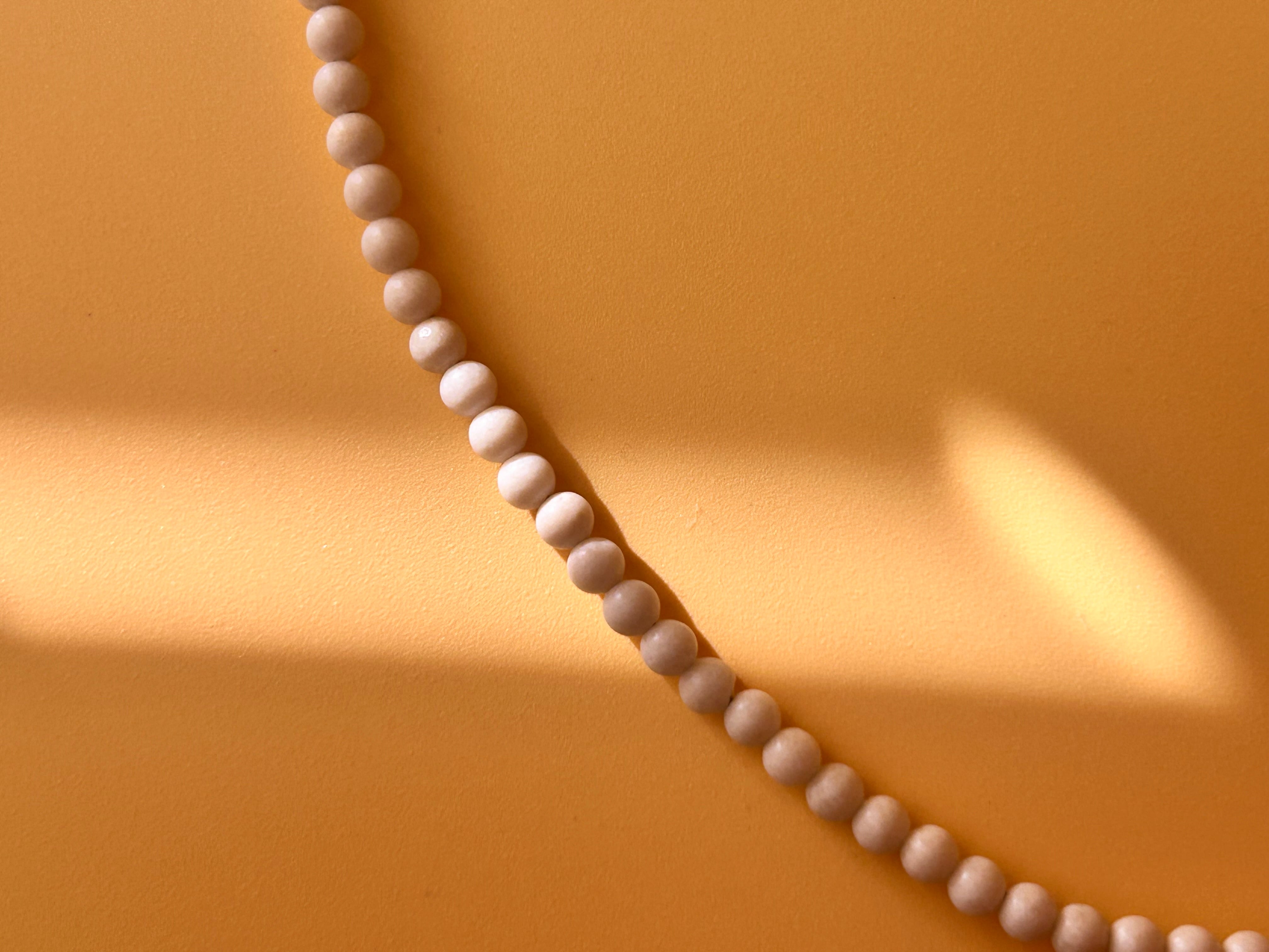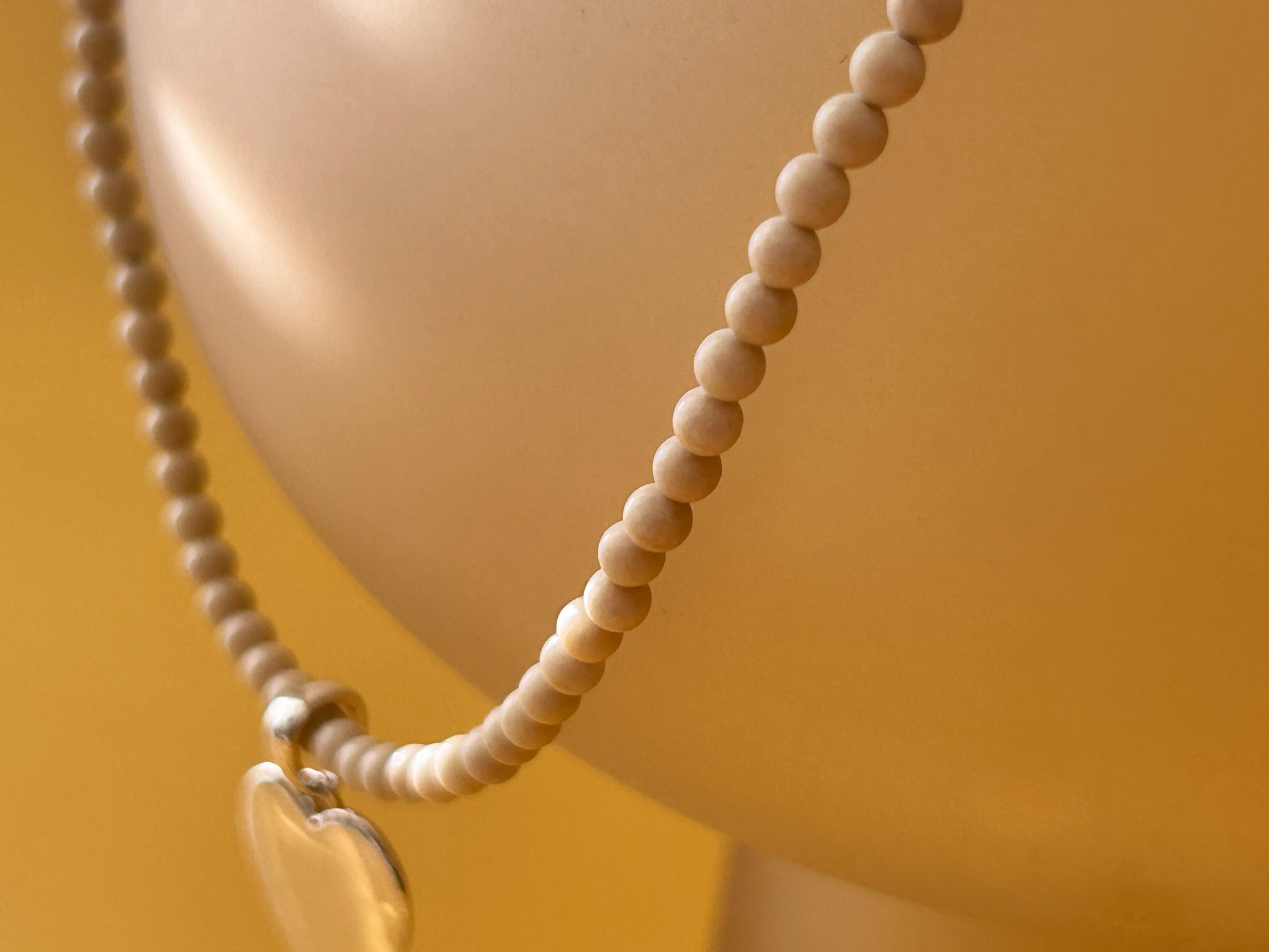 やわらかなアイボリーの陶器ビーズを連ねた、落ち着いたニュアンスのネックレス。