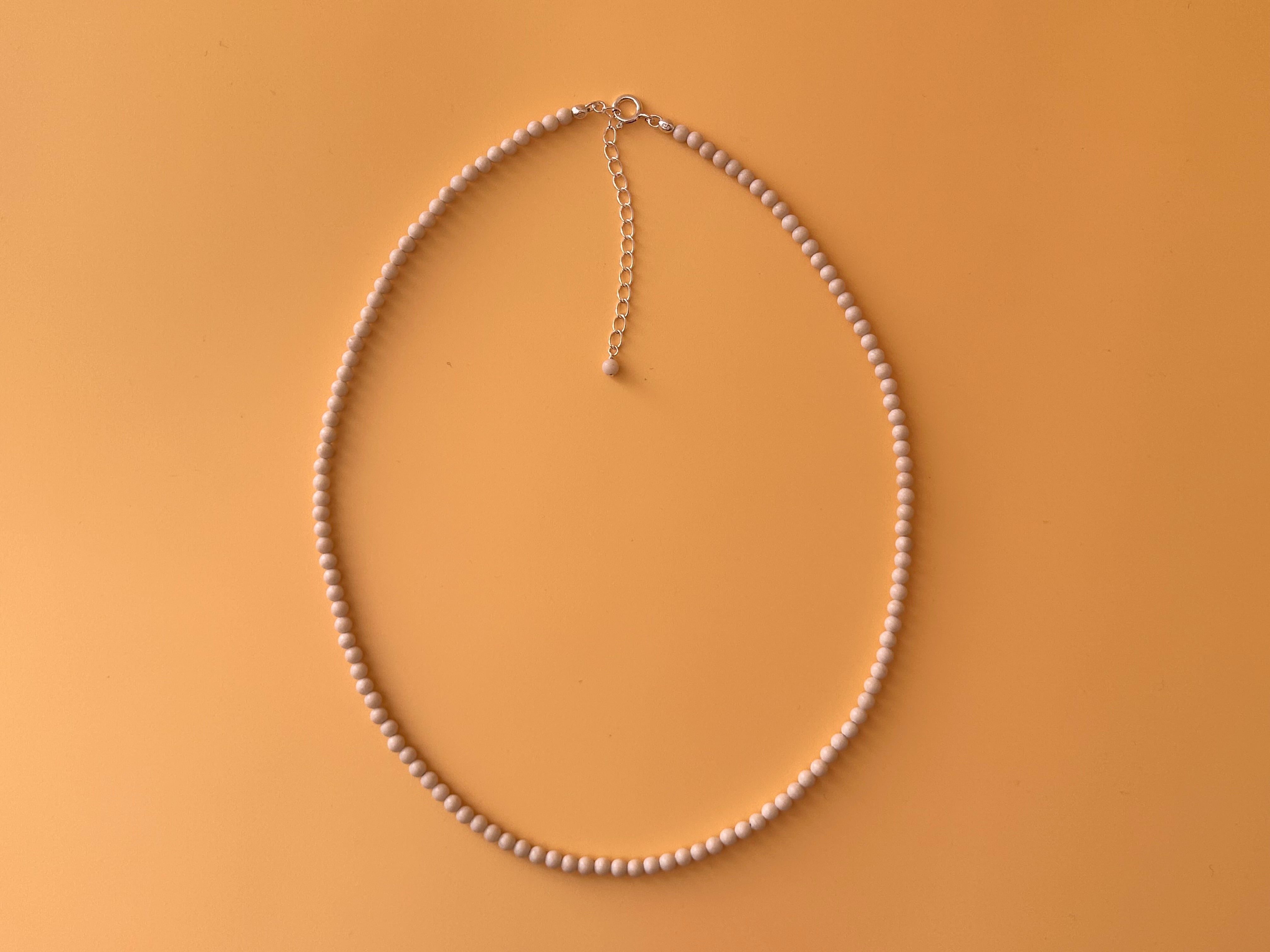 やわらかなアイボリーの陶器ビーズを連ねた、落ち着いたニュアンスのネックレス。
